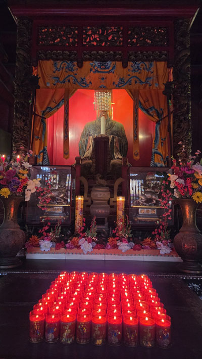 中国では、赤いろうそくは幸運・繁栄・幸福を象徴する縁起物で、願い事をしたりお祝いの際に灯されます。光の祈願~吉祥ろうそく~は、今年から始まった祈願イベントです。吉祥ろうそくは「吉祥(きっしょう)」「財源廣進(ざいげんこうしん)」「招財進寶(しょうざいじんぽう)」の3種類。お願い事を選んで、孔子像前にお供えしてください。
